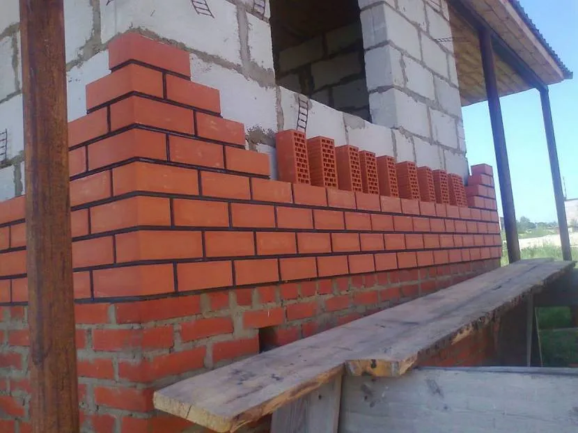 - Обязательная укладка арматуры. Для того чтобы постройка имела достаточную прочность арматура должна укладываться через каждые 4-5 рядов кладки, а также в местах дверных и оконных проемов.