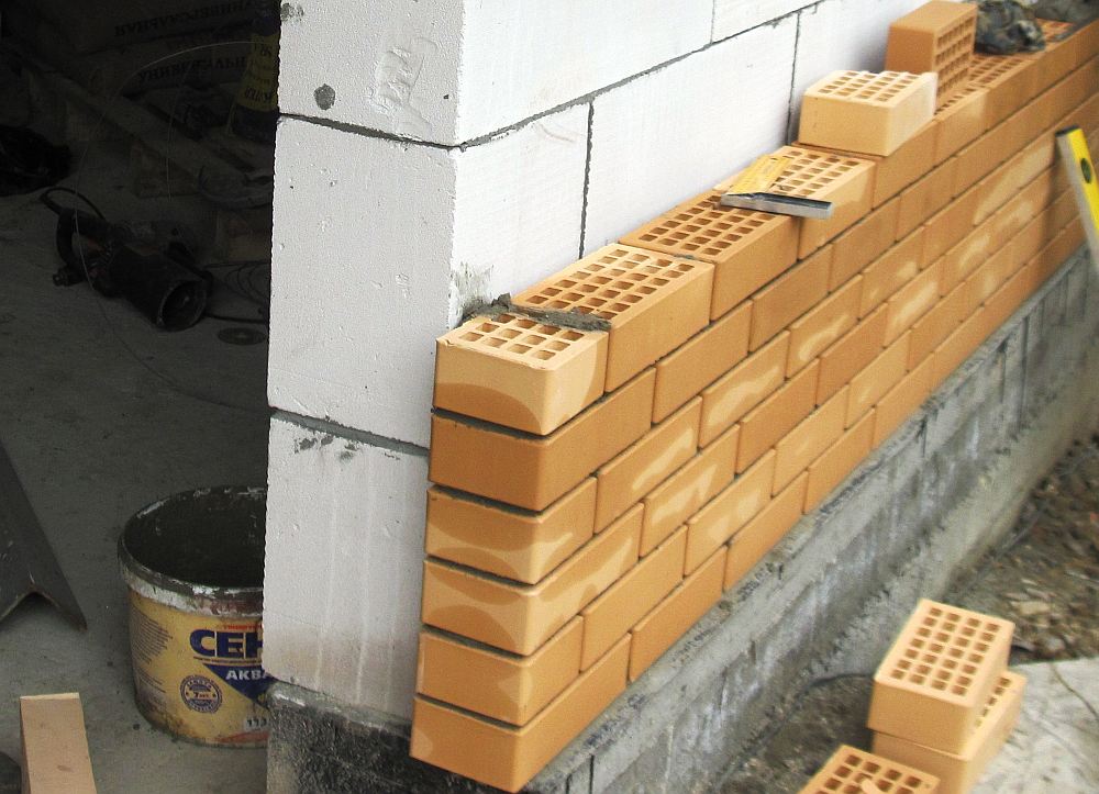 Стены, возведенные из пеноблоков, для защиты от атмосферных явлений, нуждаются в облицовке.