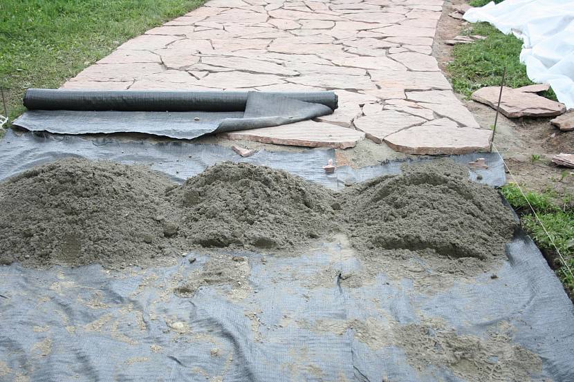 Применение геополотна помогает обустроить аккуратные и долговечные садовые дорожки и площадки. До того, как появился этот универсальный материал, технология строительства была стандартной. В грунте подготавливалось углубление по форме дорожки, в котором формировалась песчано-гравийная подушка; поверх нее укладывалось декоративное покрытие.
