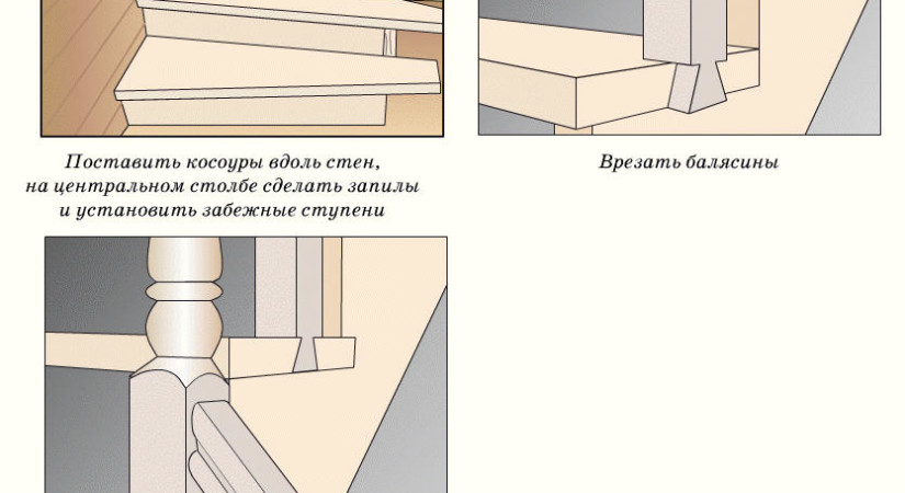 Косоур лестницы являются разновидностью тетивы. Они представляют собой боковые брусья с вырезами сверху, в которые вставляются ступеньки;