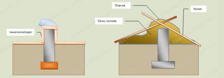 - утепление боковых стен пенопластом или другим влагонепроницаемым утеплителем;
