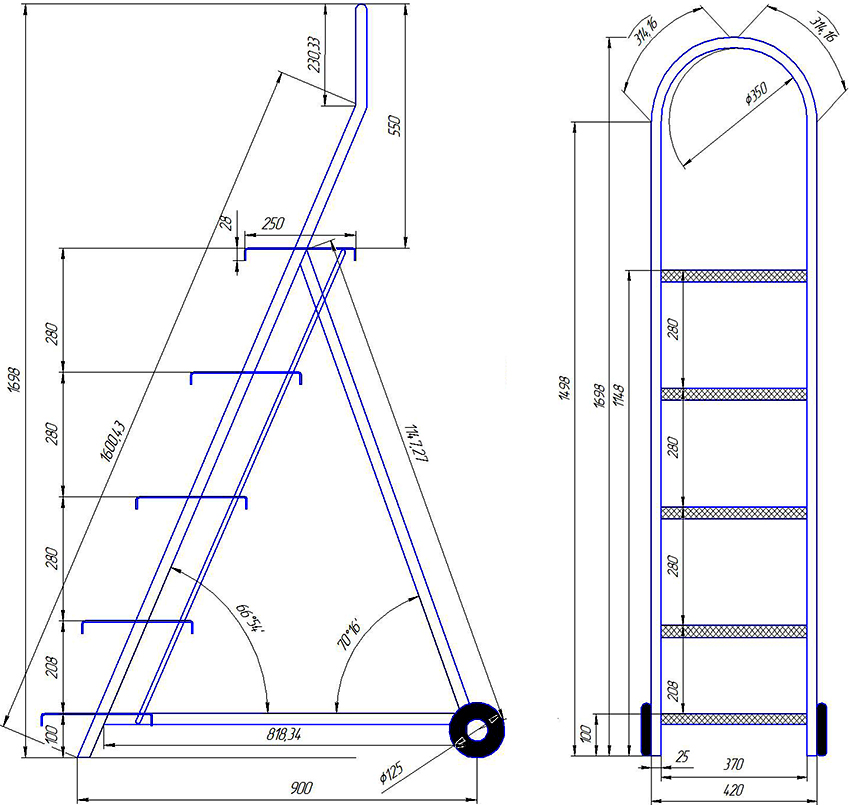 Конструкция стремянки по сути представляет собой две соединенные приставные лестницы