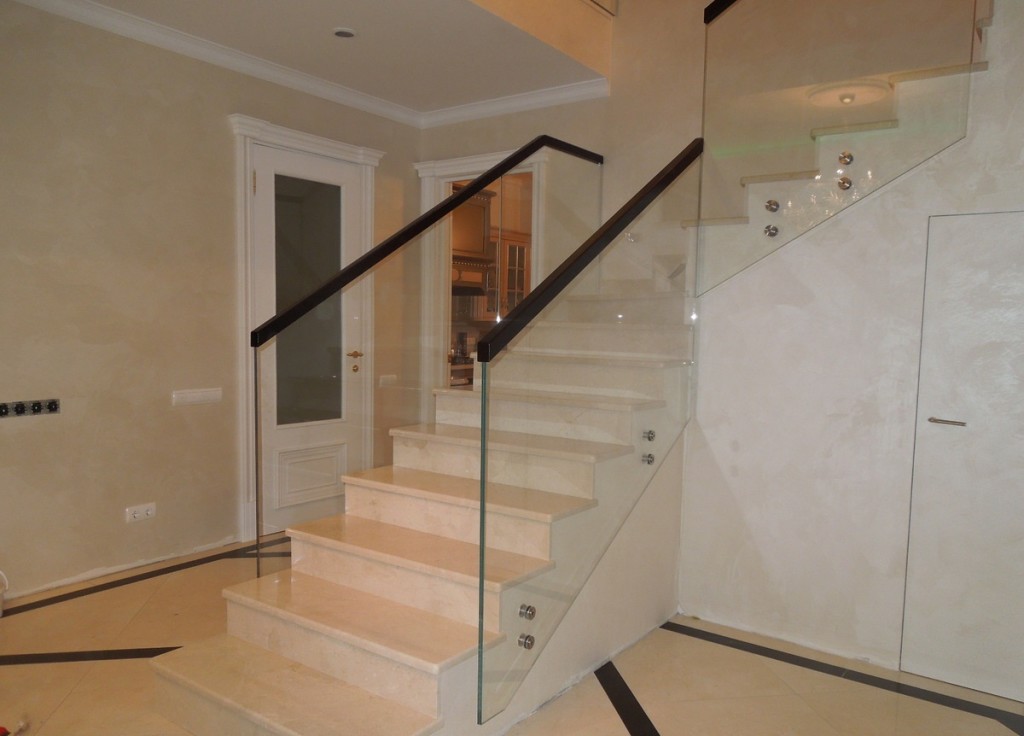 Лестница со стеклянными перилами в сочетании с другими материалами