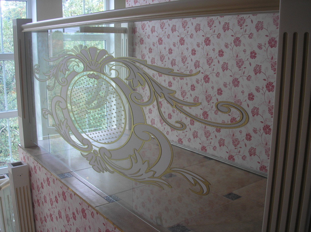 Ограждение изготавливается из стекол различных по толщине, с обработанной поверхностью, с тонировкой разных оттенков или из матового стекла. Существуют стеклянные панели с различными узорами, дающими дополнительное украшение интерьеру.