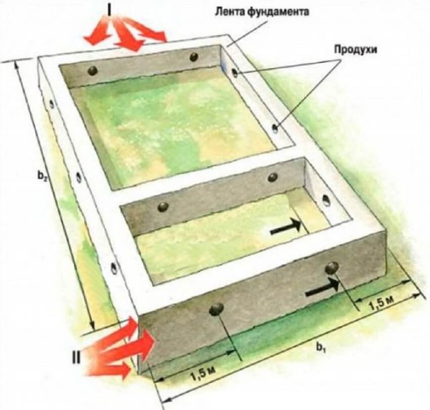 Расположение продухов в фундаменте