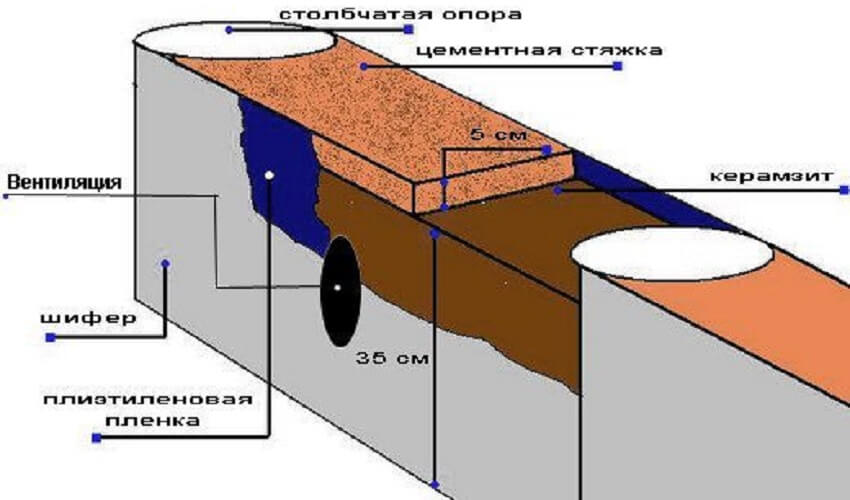Схема обустройства фундамента вентиляцией
