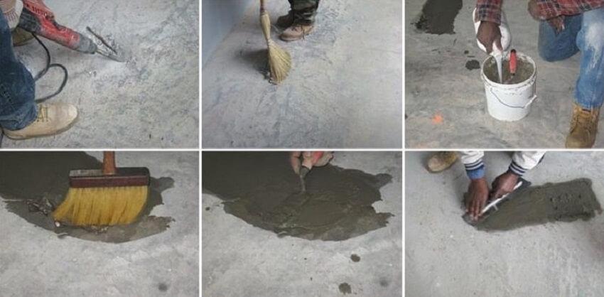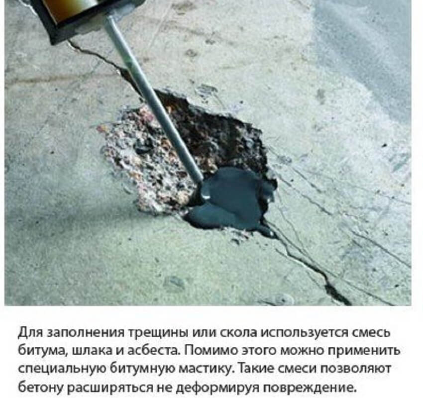 - Когда размер щелей средний, то устранение дефектов, производится по-другому. Сперва поверхность очищается и, при помощи перфоратора, щели расширяют. Затем, полученные ямки, обрабатывают грунтовкой и дают полностью просохнуть. После, заполняют бетоном.
