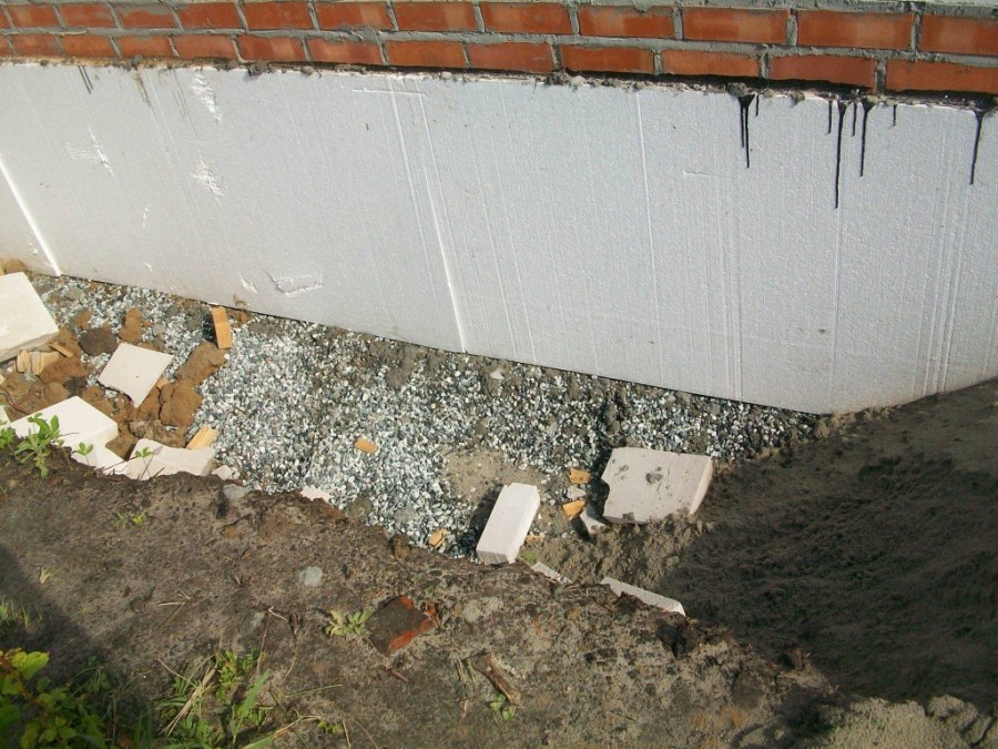 В связи с тем, что верхний слой грунта чаще всего встречается глинистый, то он при похолодании и резком потеплении меняет свой объем и форму. Это может привести к смещению здания и деформациям конструкции. Ну и в заключение при засыпании грунта поверх цоколя утеплитель защитит конструкцию здания от механических повреждений.