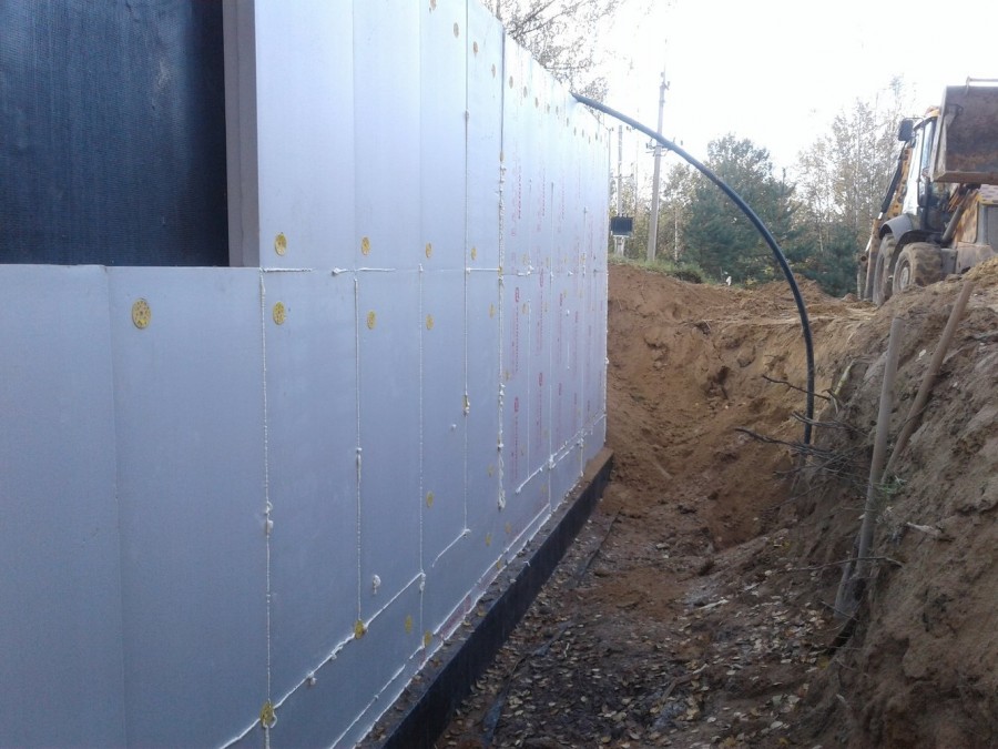 Изоляция крепится на поверхность сразу после демонтажа щитов опалубки, перед тем как проводить обратную засыпку траншеи.