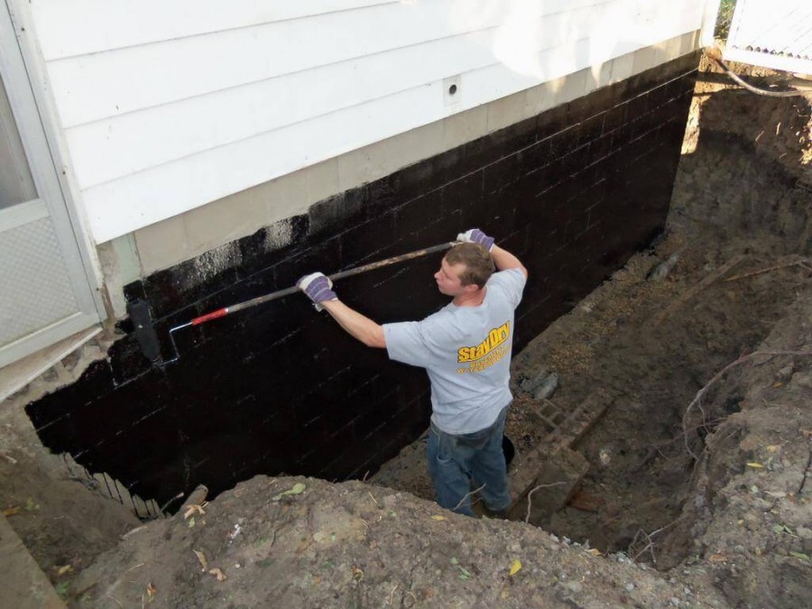 Следующий этап – организация гидроизоляции, которая бывает оклеечной либо обмазочной. Последняя осуществляется посредством обработки поверхности битумной мастикой, первая – с помощью рубероида либо аналоговых плотных пленок.