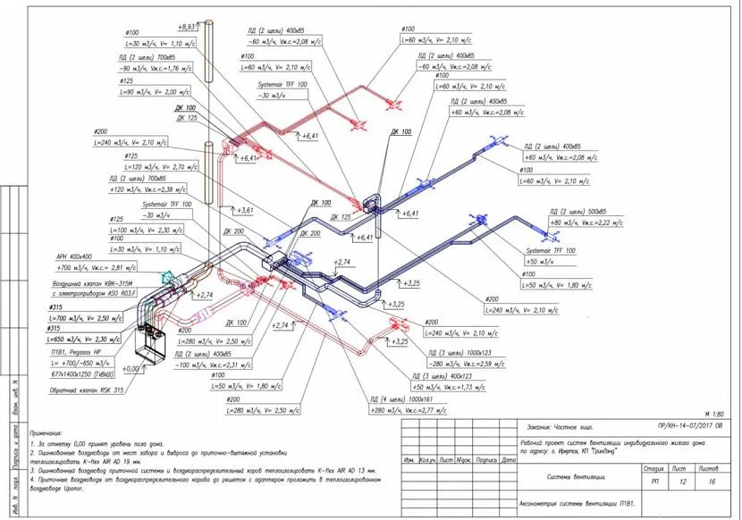 Аксонометрическая схема, как и другие части проекта вентиляции, выполняется согласно требованиям государственных стандартов: