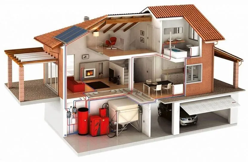 Чертеж системы отопления частного дома и установок для теплоснабжения обычно изображает такие детали, как: