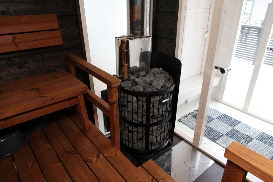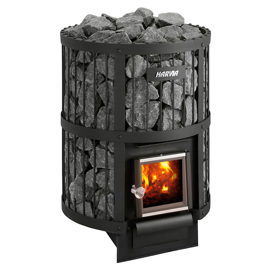 Более удобно, если дверца расположена снаружи, предполагая туннель для закладки дров. Это обеспечит быстрый доступ к дровам, и не требуют наличие дров в парной. Но печи Harvia чаще всего имеют небольшую дверцу для закладки в нижней части печи.