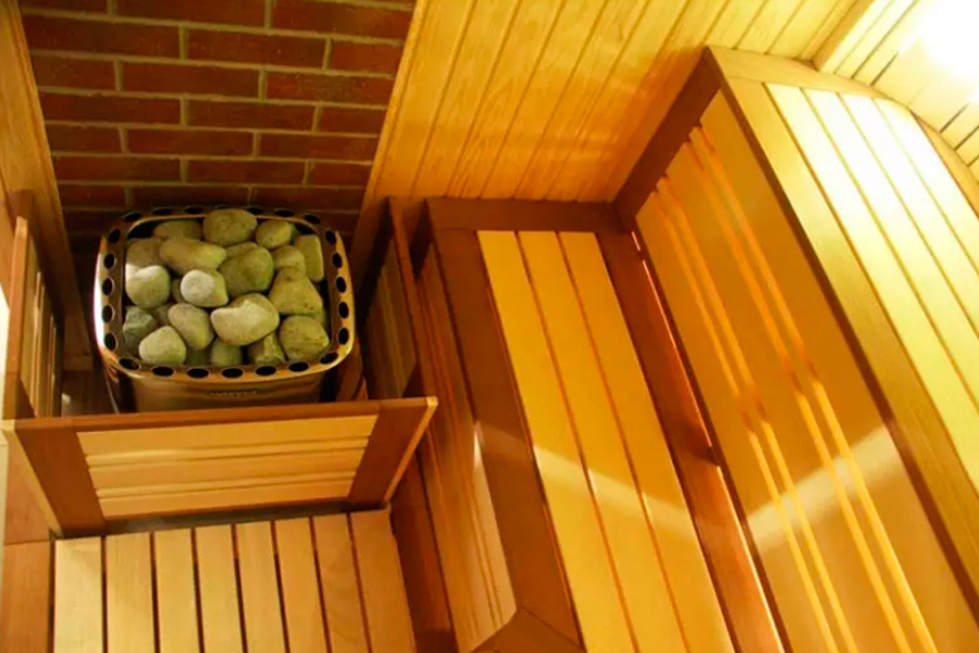 Объемная каменка даже при низкой температуре позволяет получить большое количество влажного пара.