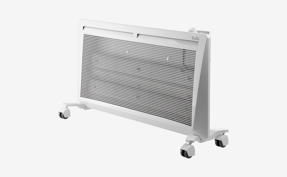 Плюсы: инфракрасный конвектор с механическим управлением предназначен для обогрева средних и больших комнат площадью до 25 м2. Устройство отличается современным дизайном, почти все переднюю часть корпуса занимает перфорация, что обеспечивает равномерный обогрев воздуха. Ширина прибора – 80 см, а высота – 41 см.