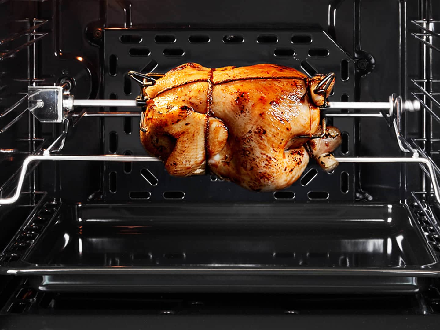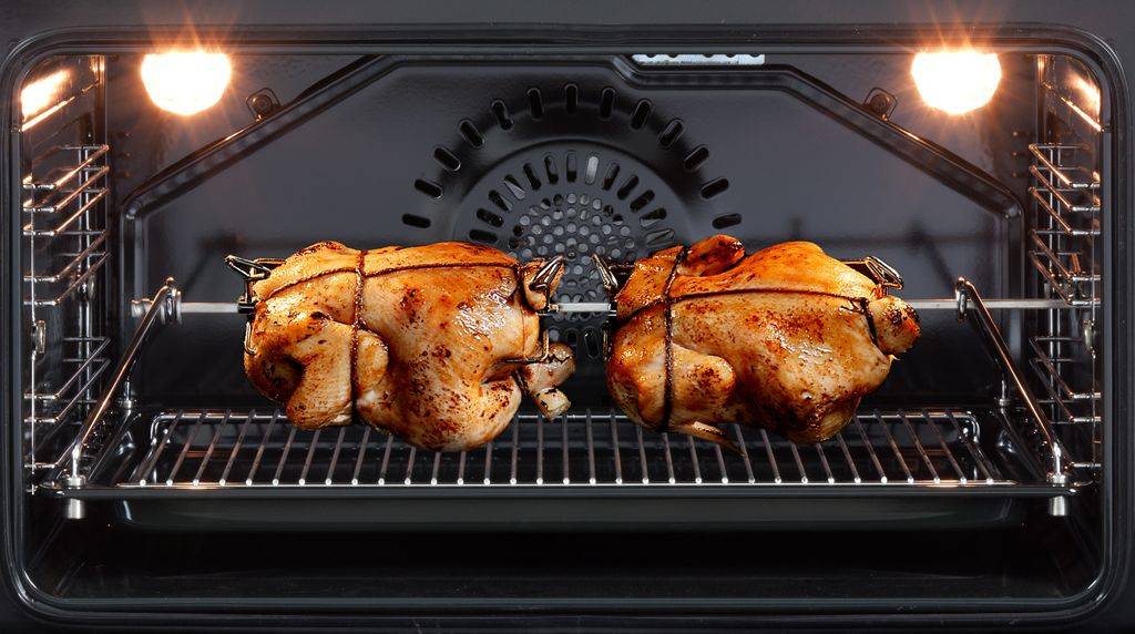 Но чаще, вместо вертела в духовых шкафах используют режим Гриль+конвекция. Вентилятор равномерно распределяет тепло по всей площади блюда. Результат будет таким же, как и при использовании вертела, мясо не пересохнет, аромат и хрустящая корочка сохранятся.