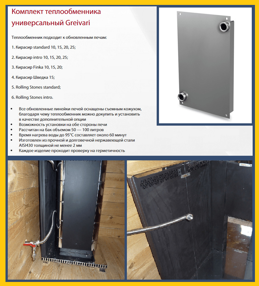 - возможность установки дополнительной емкости для сопутствующего нагрева воды,