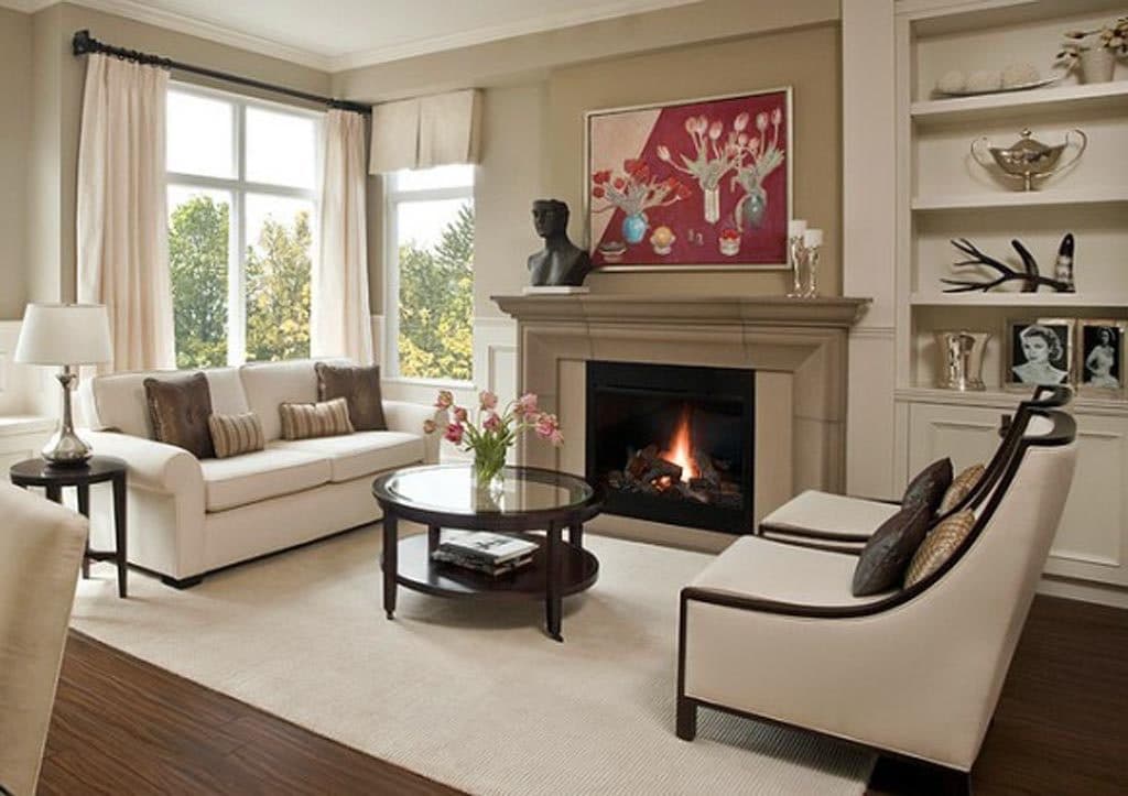 Интерьер гостиной с камином ничуть не пострадает, если вы остановите свой выбор на электрической модели устройства или, так называемом псевдо-камине, несущем исключительно декоративную функцию.