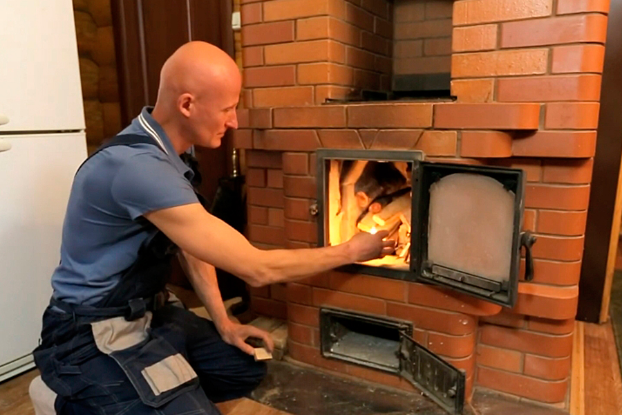 После прогрева дымоотвода нужно закрыть прочистное окошко и уложить в топку легко возгораемые предметы: щепки, лучины, обрывки бумаги. В ходе их прогорания нужно еще раз проверить дымоотвод. Убедившись, что все работает исправно, можно делать закладку дров и топить печь.