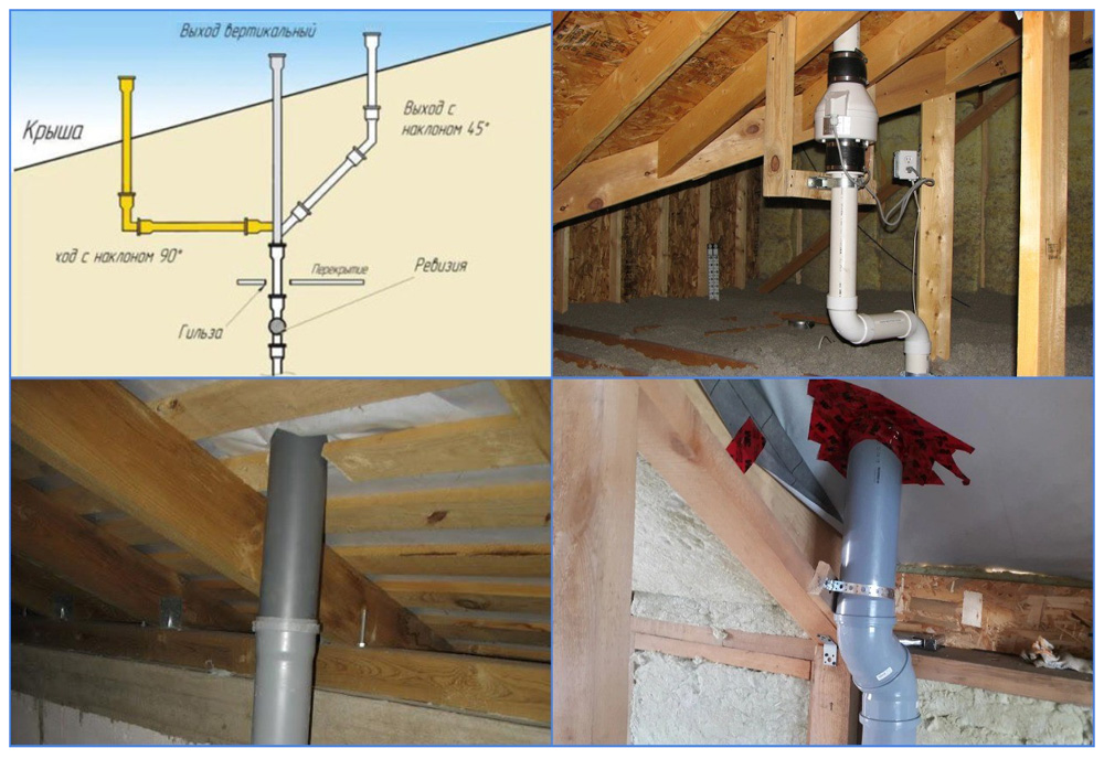 Грамотная установка труб и сантехники требует наличия фановой трубы, по которой канализационный стояк соединяется с вентиляционным проходом. Последний выводится на крыше здания.