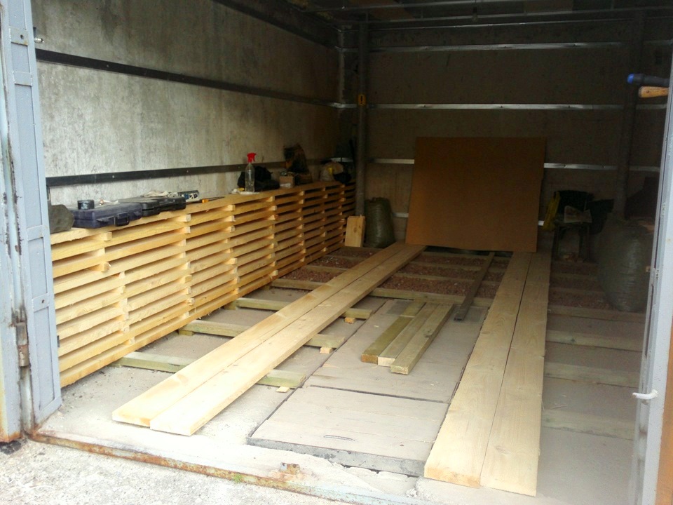 Для первого варианта, когда время, а главное финансы, ограничены, можно застелить пол гаража досками или osb-плитами. Конечно, это нельзя назвать серьезным утеплением, но заметный эффект все же появится. Пол перестанет быть холодным, а под настилом появится дополнительная воздушная прослойка, сдерживающая холод от основания пола.