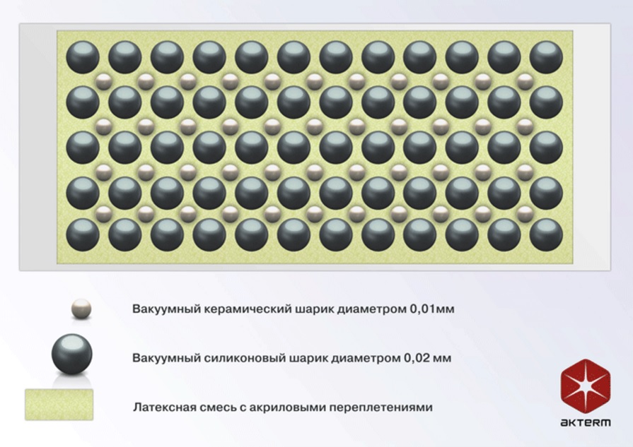 Еще один современный материал, который поражает не только простотой в использовании, но и эффективностью. Вот лишь несколько ярких примеров: слой краски, равный 1 мм, эквивалентен слою минеральной ваты в 50 мм, а нанесенный по инструкции слой краски – это все равно, что стена в 1,5 кирпича. Уникальные свойства этого утеплителя основаны на особенностях структуры и принципе действия. Все известные нам теплоизоляционные материалы работают по принципу барьера, не давая теплу покинуть пространство. Теплоизоляционная краска становится не только преградой для проникновения инфракрасных лучей наружу, но и их отражателем, вследствие чего теплу гораздо сложнее покинуть пределы такого помещения. Подобный эффект стал возможен благодаря присутствию вакуума внутри, который и препятствует прохождению ИК-лучей.
