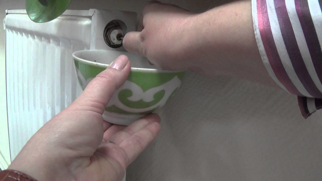 - Винт крана Маевского первого контура поворачивают шлицевой отверткой по направлению против часовой стрелки. Полимерную вставку перед этим поворачивают отверстием вниз, подставляют подходящую емкость для сбора жидкости.