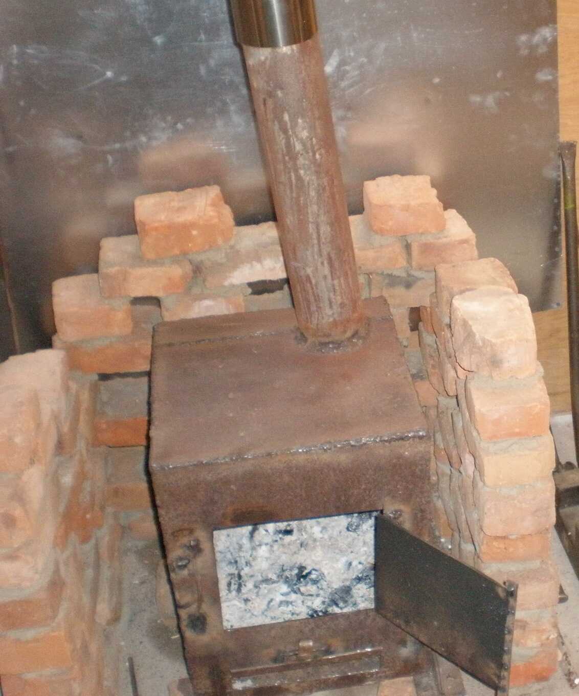 Наши читатели нередко спрашивают: «стоит ли обложить буржуйку кирпичом? Отвечаем: ни в коем случае. С учётом особенностей конструкции это может привести к её перегреву и прогоранию дымохода. Речь может идти только о вентилируемом защитном кожухе для боковых и задней поверхностей. Если имеется желание значительно увеличить теплоёмкость и немного теплоотдачу стальной печи, её реально подключить к отопительному кирпичному щитку. Правда, только при условии наличия достаточной тяги и места для относительно громоздкой кирпичной конструкции.