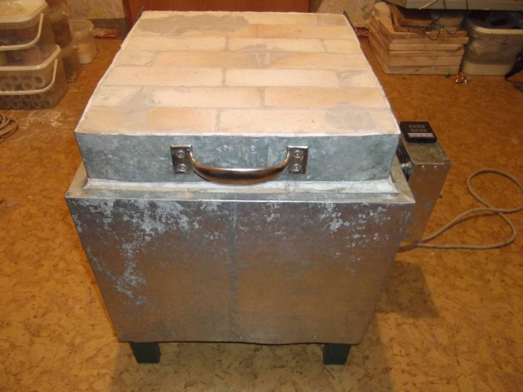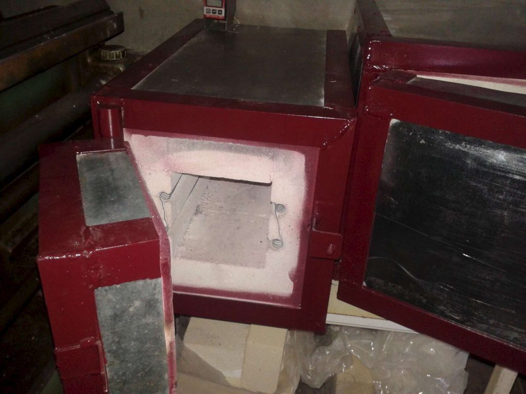 Печь рассчитана на 220 В переменного тока. Разогревается до максимальной температуры 950 градусов в течение часа. Вес печи около 10 кг.