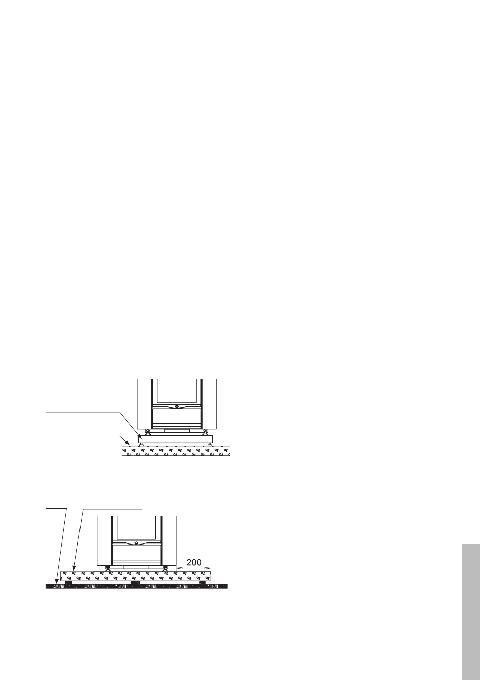 Безопасное расстояние до сгораемых материалов под отсеком для камней в боковом направлении 200 мм, в заднем – 250 мм. Над камнями безопасное расстояние составляет 500 мм из-за высокой температуры камней (до 350ºC).