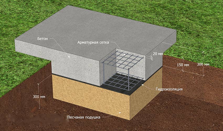 - изготавливают опалубку, заливают бетонным раствором высотой не менее 10 см, используя армирующую сетку;
