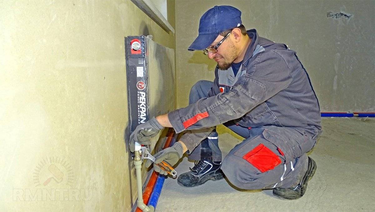 Сам монтаж радиаторов с нижним подключением не подразумевает особой сложности, но для этого требуется заранее подготовить всю необходимую арматуру, фитинги и средства упаковки. В зависимости от типа радиаторов, перечень может отличаться.