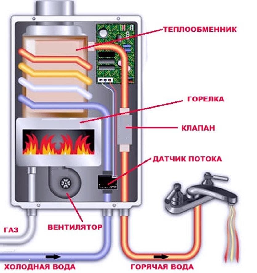 Автоматика системы осуществляет блокировку подачи газа в случае недостаточного давления воды. Оценить напор можно, просто открыв водопроводные краны. Если он маленький или вовсе отсутствует, значит, аварийное отключение в газовой колонке происходит не из-за поломки прибора.