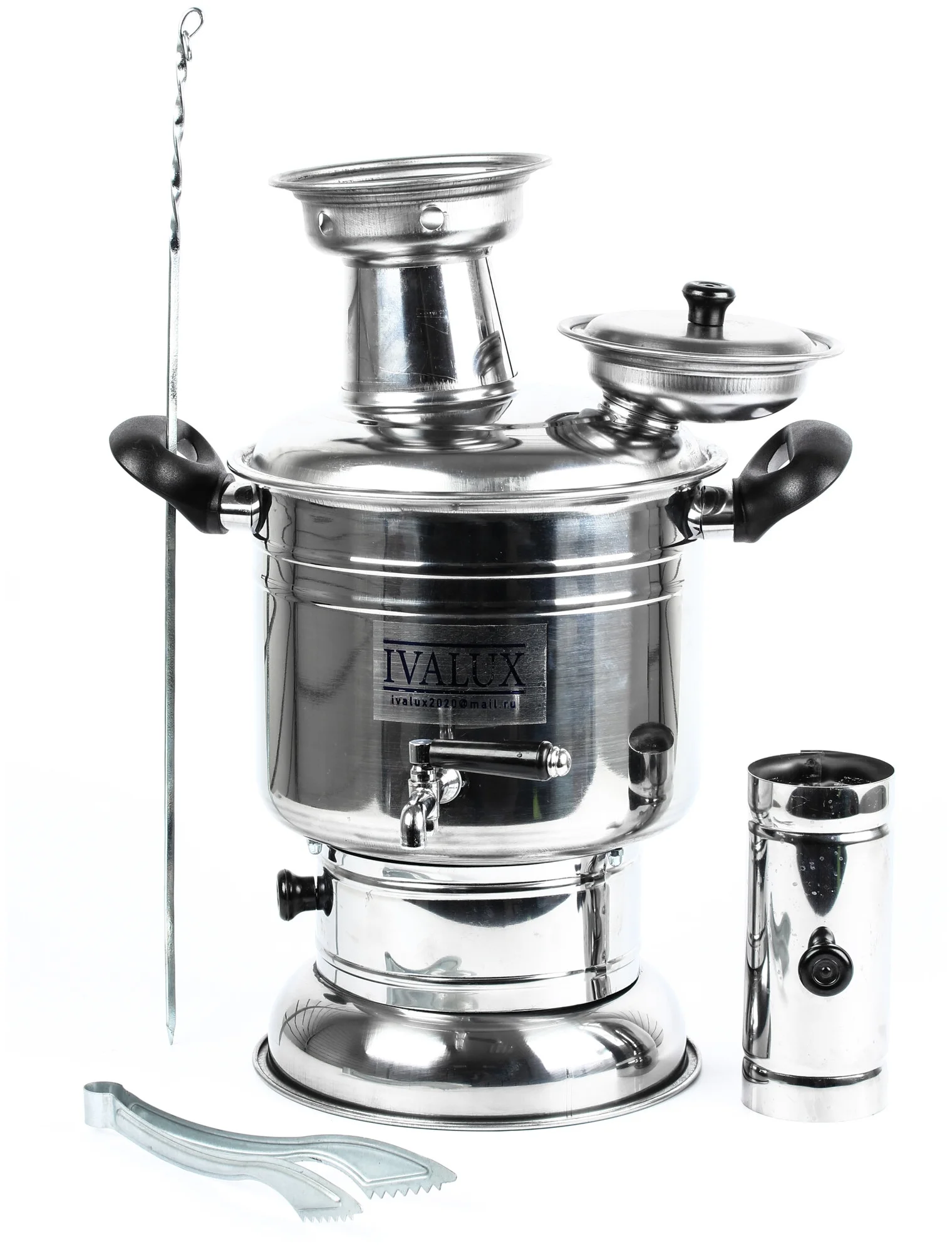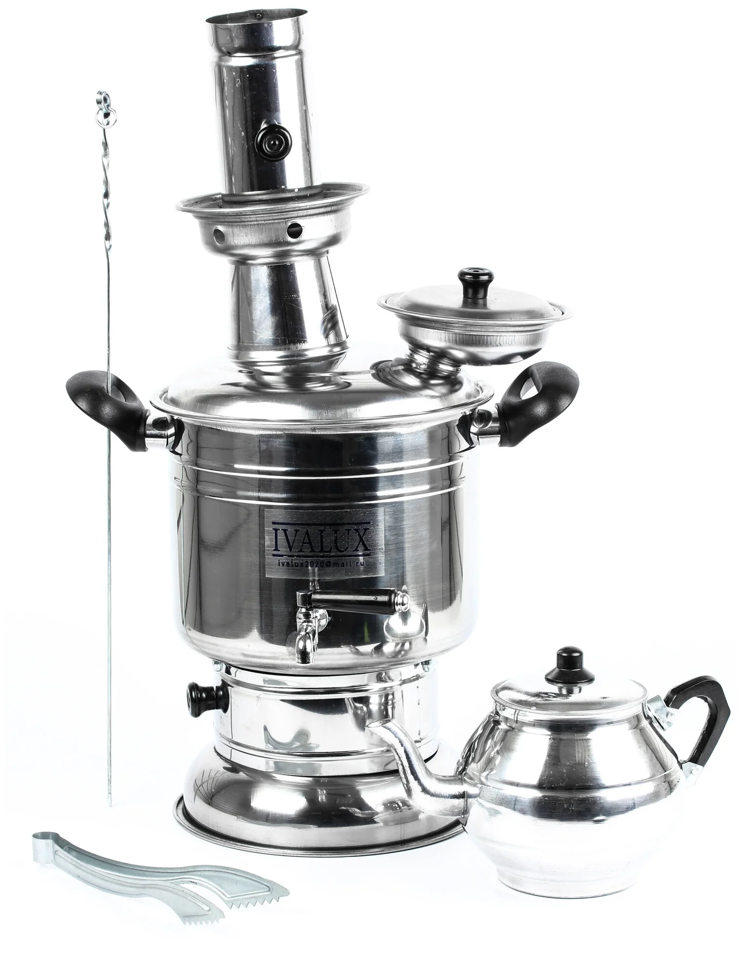 Очень быстрая доставка и цена достаточно приятная. Самовар стоит своих денег, сделан аккуратно и хорошо упакован. Блестящая поверхность не поцарапана и будет хорошим подарком. В комплекте идет чайник , щипцы и шомпол
