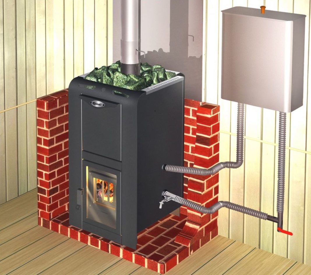 В качестве топлива используются брикеты, дрова, газ, весьма востребованы комбинированные модели. Комплектация, функционал и конструкция определяются типом применяемого теплоносителя. Мощность устройств варьируется в пределах 12-36 кВт, этот диапазон позволяет найти прибор, подходящий под любой распространенный объем парной.