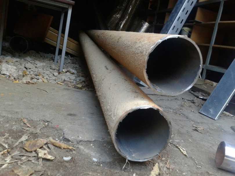 - Из трубы вырезают отрезок длиной 90 см. Края выравнивают и шлифуют.