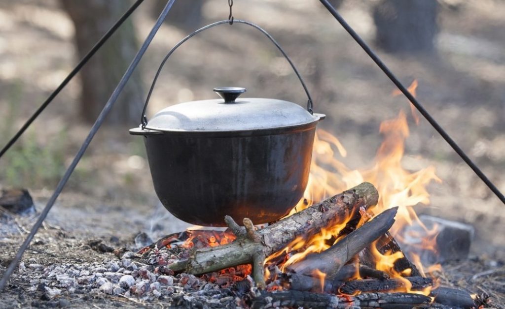 Для приготовления на костре есть специальные приспособления для фиксации посуды. С ними не придется выкладывать опору из кирпича или искать в лесу камни.