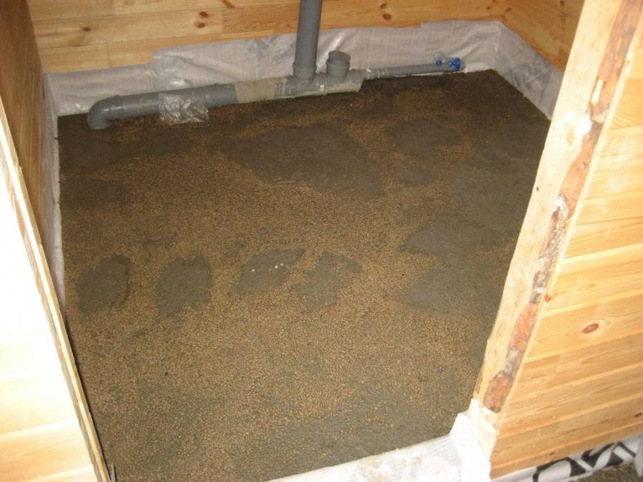 Для пола в бане подойдут почти любые материалы, например те, которые идут на утепление лоджии, то есть, экструзионный пенополиэтилен или керамзит. Ведь вы всё равно будете заливать цементную стяжку, так что подойдёт и то, и другое, но керамзит гораздо дешевле. Толщина термоизоляционного слоя будет зависеть от степени промерзания грунта и от общей температуры в вашей местности.