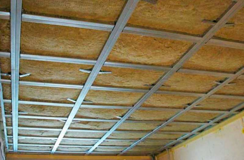 Внутри используют чаще всего минеральные утеплители. Работы можно сделать с помощью рулонной стекловаты. В комплекте с потолком из гипсокартона получится отличный буфер для горячего воздуха. Процесс утепления осуществляется в момент монтажа подвесного потолка.