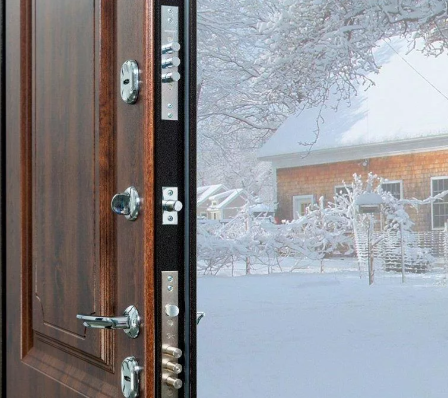 - отсутствие дверного глазка и цилиндровых замков (часто промерзающих);