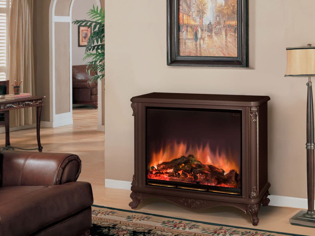 - Простой монтаж. Для установки электрического камина не требуется дымохода, укрепления пола и т.д. Достаточно просто поместить его в портал или предусмотренную для этого нишу и подключить к электросети.