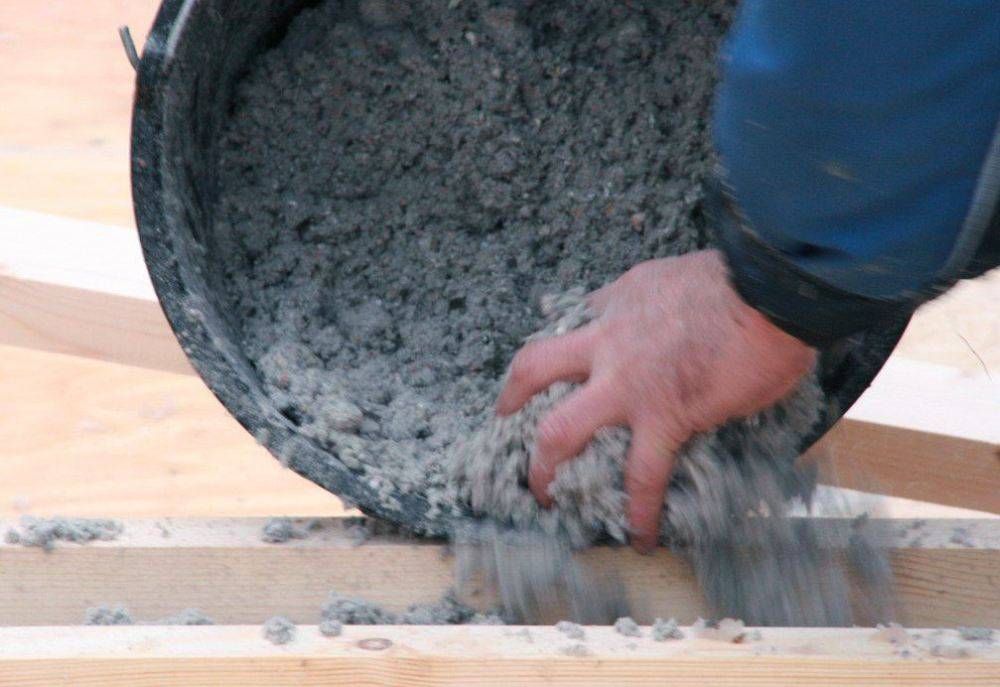 Сначала нужно подготовить утеплитель, высыпав его в емкость типа ведра или таза. Следующий этап – «распушение», проводится с помощью дрели.