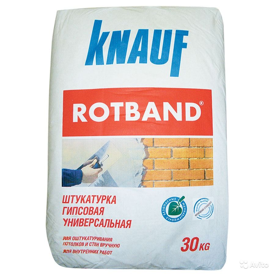 В качестве материала используется «Ротбанд». Это гипсовая смесь универсального назначения. Ее применяют как стартовую, так и финишную смесь в комплексе.