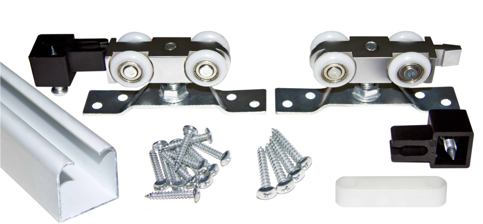 В строительном магазине первым делом приобретается механизм. По размерам дверных приемов и полотна консультанты смогут подобрать нужный вариант. Стоит учесть, что длина направляющих должна быть в 2 раза длиннее, чем полотно. Если система чуть длиннее, не беда. Лишнее всегда можно обрезать.