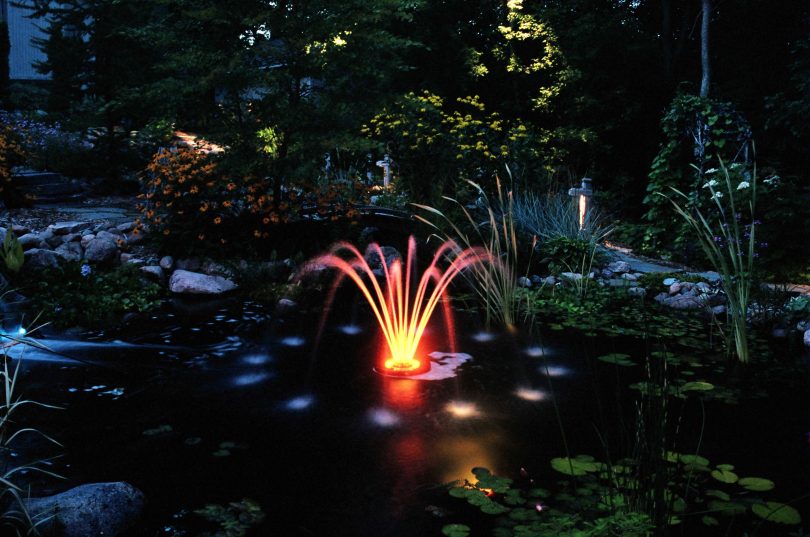Что делать, если установлен фонтан на даче, и хочется разнообразить его какой-нибудь подсветкой? Давайте разбираться.