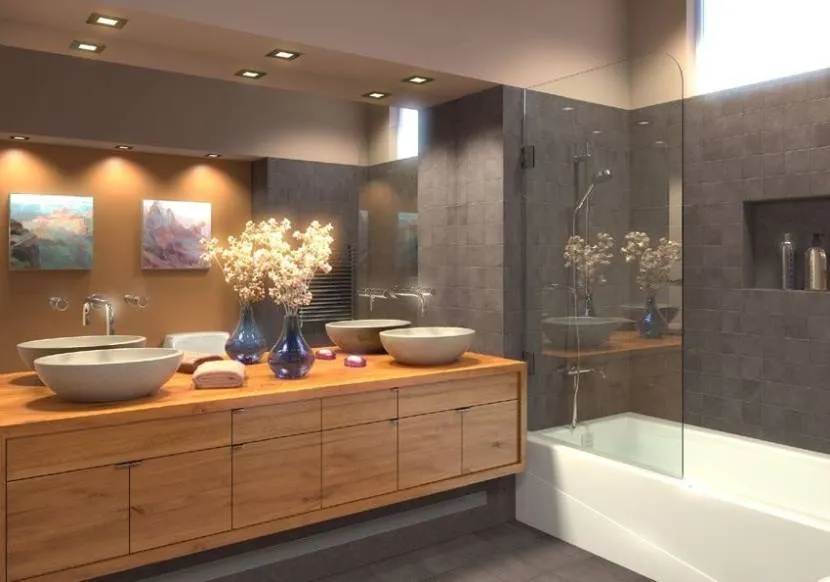 ΠΡΠΈ Π²ΡΠ±ΠΎΡΠ΅ Π΄ΠΈΠ·Π°ΠΉΠ½Π° ΠΊΠ°ΡΠ½ΠΈΠ·Π° ΡΠ»Π΅Π΄ΡΠ΅Ρ ΠΎΡΡΠ°Π»ΠΊΠΈΠ²Π°ΡΡΡΡ ΠΎΡ ΠΎΠ±ΡΠ΅Π³ΠΎ ΠΎΡΠΎΡΠΌΠ»Π΅Π½ΠΈΡ Π²Π°Π½Π½ΠΎΠΉ. ΠΡΠ΅ ΡΠ»Π΅ΠΌΠ΅Π½ΡΡ ΡΡΠ°Π½Π³ΠΈ ΠΈ Π°ΠΊΡΠ΅ΡΡΡΠ°ΡΡ ΠΊΠΎΠΌΠ½Π°ΡΡ Π΄ΠΎΠ»ΠΆΠ½Ρ ΡΠΎΡΠ΅ΡΠ°ΡΡΡΡ Π΄ΡΡΠ³ Ρ Π΄ΡΡΠ³ΠΎΠΌ. ΠΠ»Ρ ΠΏΡΠΎΡΡΠΎΡΠ½ΠΎΠ³ΠΎ ΠΏΠΎΠΌΠ΅ΡΠ΅Π½ΠΈΡ ΠΏΠΎΠ΄ΠΎΠΉΠ΄ΡΡ ΡΠΈΠ³ΡΡΠ½ΡΠ΅ ΠΊΠΎΠ½ΡΡΡΡΠΊΡΠΈΠΈ, Π΄Π»Ρ Π½Π΅Π±ΠΎΠ»ΡΡΠΎΠ³ΠΎ β Π»ΡΡΡΠ΅ ΠΎΡΡΠ°Π½ΠΎΠ²ΠΈΡΡΡΡ Π½Π° ΡΠ³Π»ΠΎΠ²ΠΎΠΉ ΠΈΠ»ΠΈ ΠΏΡΡΠΌΠΎΠΉ ΠΌΠΎΠ΄Π΅Π»ΠΈ.