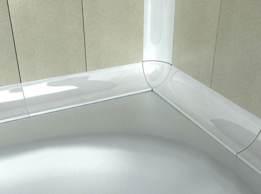 Пластиковые — изготавливаются из поливинилхлоридного профиля, у них широкий диапазон цветовых решений. Это легкие, гибкие и водоустойчивые элементы. Вследствие небольшого веса ПВХ деталей возможно их приклеивание на силиконовое герметизирующее средство к месту стыка уже после укладки керамического покрытия. При устанавливании душевой кабины это самый незаменимый вариант.