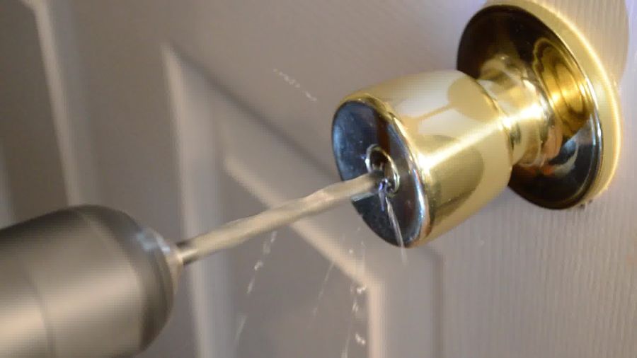 Понадобится инструменты: сверло либо дрель с регулируемой скоростью. Диаметр сверла должен быть соизмерим с размером личинки замка (около 3 мм). Такой размер позволяет аккуратно высверлить пины, что позволит быстро решить проблему самостоятельно. Электроинструмент следует приставить к замочному отверстию и просверлить до места расположения штифта, который цепляется за ригель (примерно – до середины). Крепление после высверливания можно будет провернуть с помощью отвёртки либо проволоки и освободить запор. В случае личинки с броненакладкой понадобится сверхпрочное сверло с твердосплавной напайкой. Когда личинку цилиндрового замка рассверлить невозможно, необходимо просверлить весь цилиндр. В этом случае понадобятся знания, как вскрыть личинку с помощью сверла диаметром 19 мм, либо специальным трубчатым сверлом, предназначенным для высверливания замка. После данной процедуры замок будет полностью разрушен.