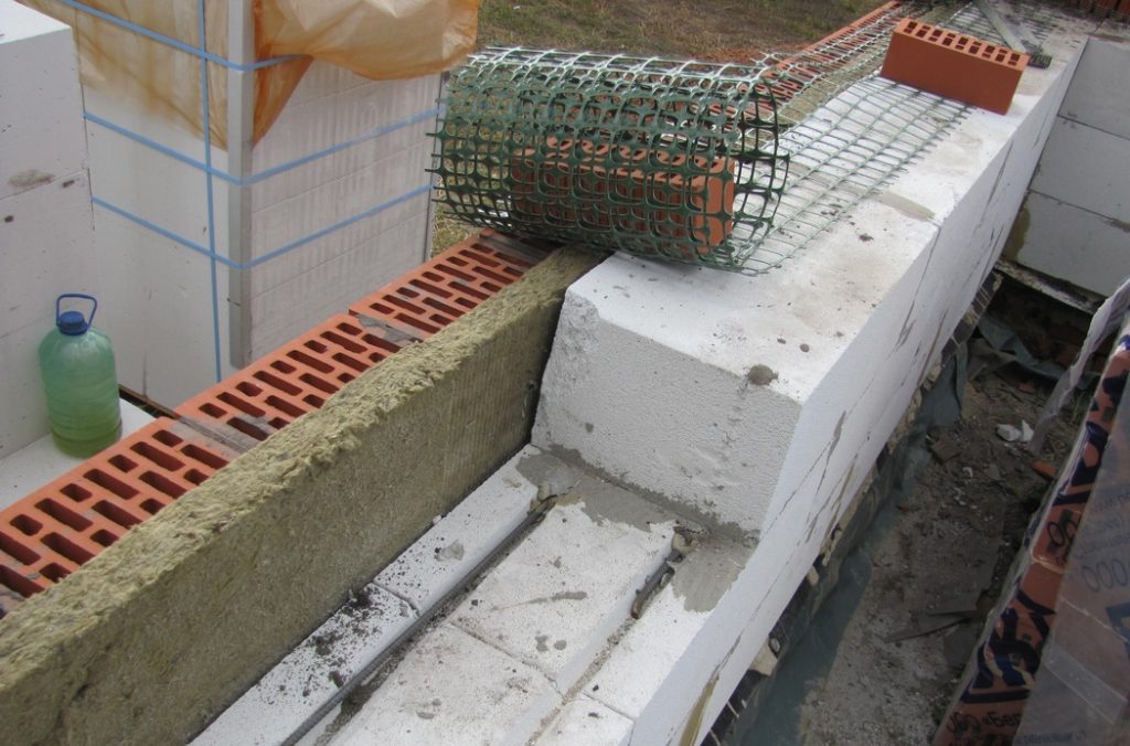 - При строительстве сохраняются низкие температуры, из-за чего раствор схватывается медленно. Поскольку это обычно не даёт возможности затягивать строительство, конструкцию усиливают с помощью сетки.