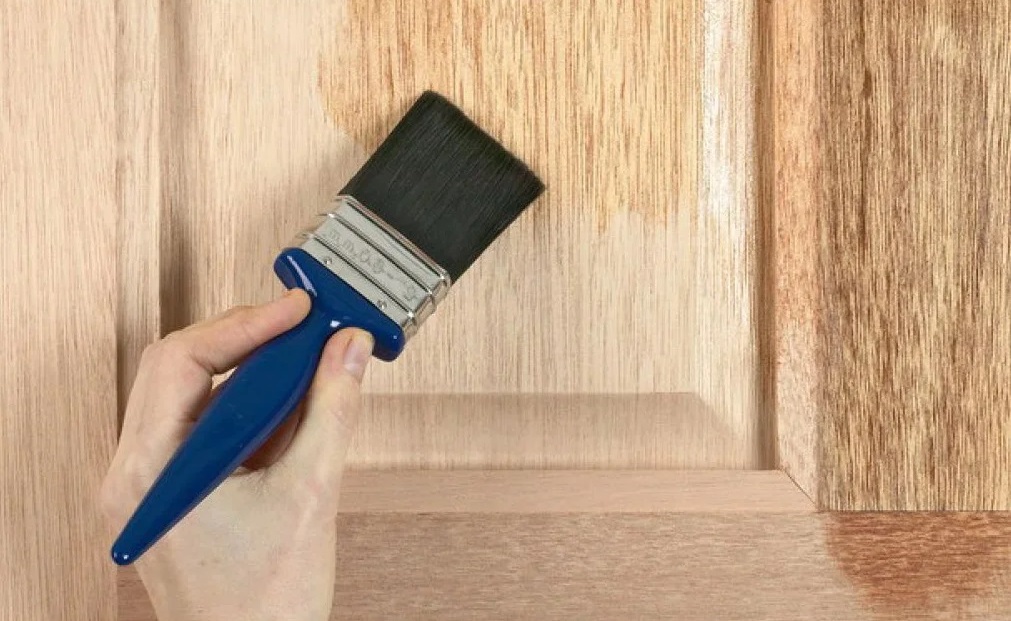 Морилку накладывают с помощью кисти, начиная наносить состав вдоль волокон. Операцию повторяют, но уже двигаясь поперек них. После каждого этапа необходимо дать поверхности полностью просохнуть. Перед нанесением финишного слоя нужно провести шлифовку наждачкой мелкой зернистости.